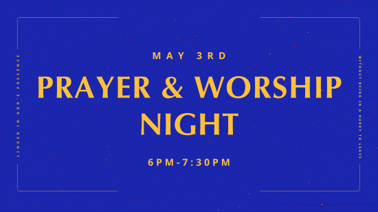 Join us for a night of worship through song and prayer! Childcare is available for preschool-elementary. Register them HERE by April 29th.